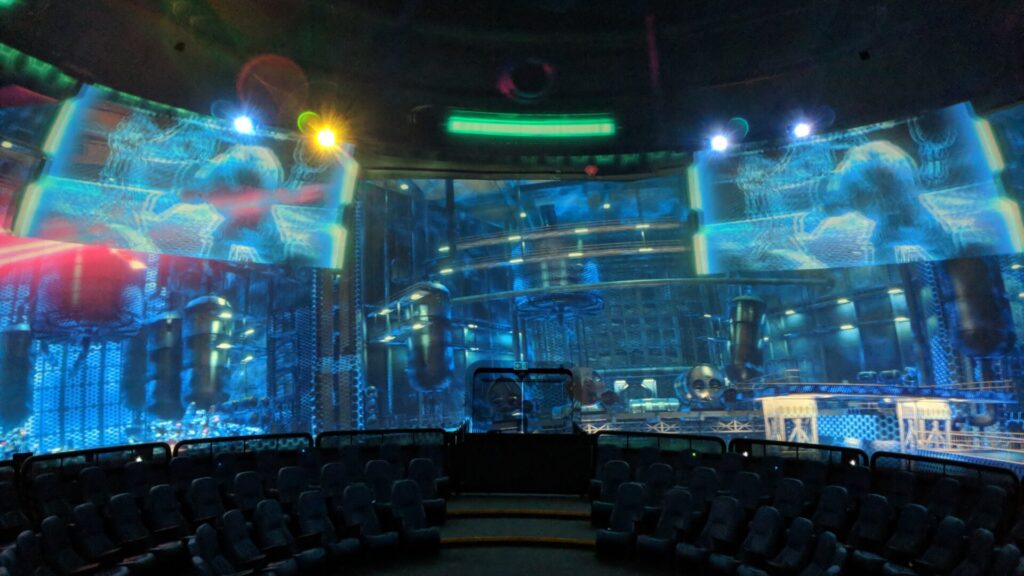 Custom software was created specifically for this ride system to allow for precise motion-base programing. This gave Falcon’s the ability to artistically animate the motion profile onsite while riding. Everything that happens to the IRIS in the media is replicated in CircuMotion® Theater. The synchronization between the media and the motion base allows guests to really feel immersed. Hulk landing on the IRIS causes the CircuMotion® platform to sway towards him as he hangs on. Every time a missile hits the IRIS, the CircuMotion® platform jerks away, replicating the movement a flying saucer would make if it was hit by something with mass. As the IRIS flies through Epsilon Base, the CircuMotion® platform replicates those movements seamlessly, and it really feels like you’re flying. Of course, to top it all off, the massive stereoscopic dome content allows guests to visually feel the scale of Hulk and Epsilon Base. Everything just feels right.